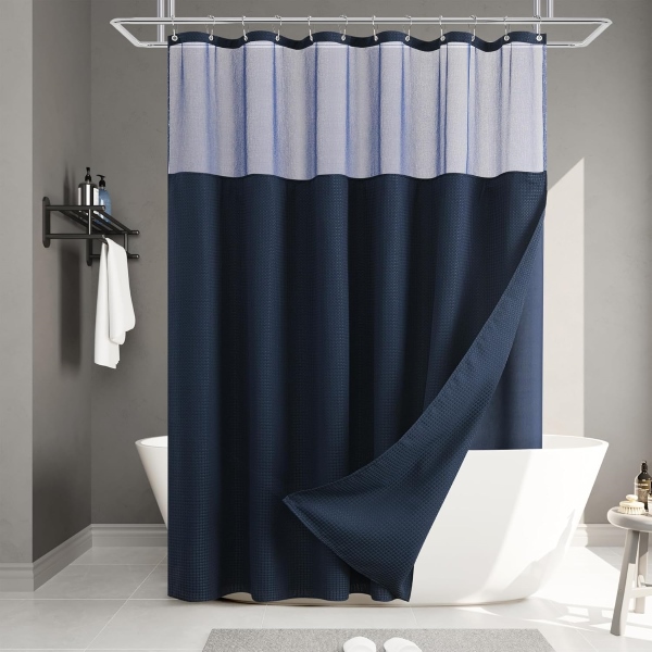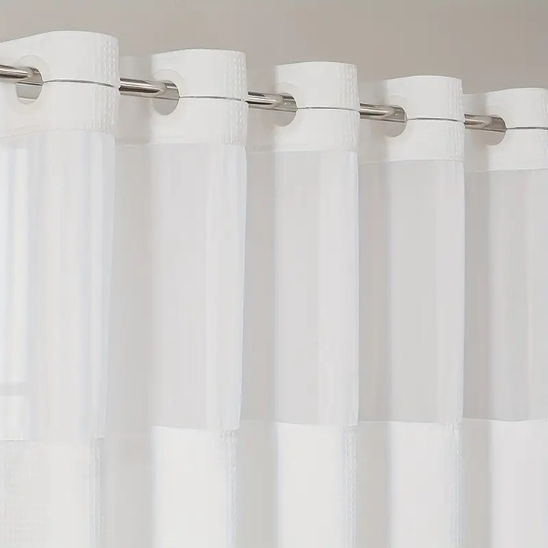 Sprchový závěs CURTELLE má dvouvrstvý voděodolný design, který poskytuje vynikající ochranu proti vodě a udržuje vaši koupelnu suchou a pohodlnou.
