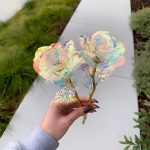 Každá růže je vyrobena s duhovým, holografickým povrchem, který se na světle nádherně třpytí a vytváří třpyt galaxie, který je jednoduše fascinující.