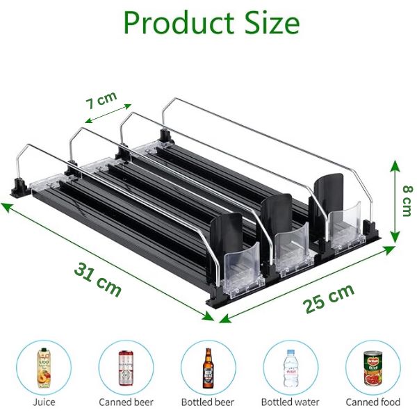 Ušetřete cenné místo v lednici dokonalým uspořádáním vašich lahví a plechovek pro snadný přístup.