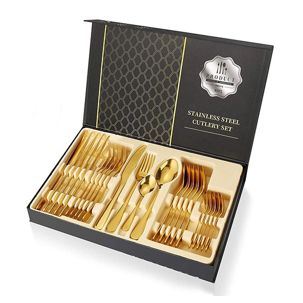 Naše luxusní sada příborů, která je ideální pro zvláštní příležitosti i každodenní použití, se díky svému stylovému a všestrannému designu bez problémů přizpůsobí jakémukoli stolování.