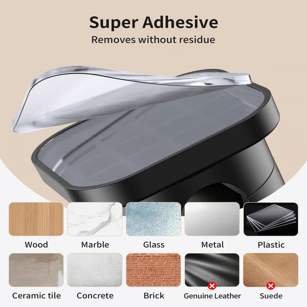 Pevně se přichytí na rovné povrchy, jako je dřevo, dlaždice, kov a hladké stěny.